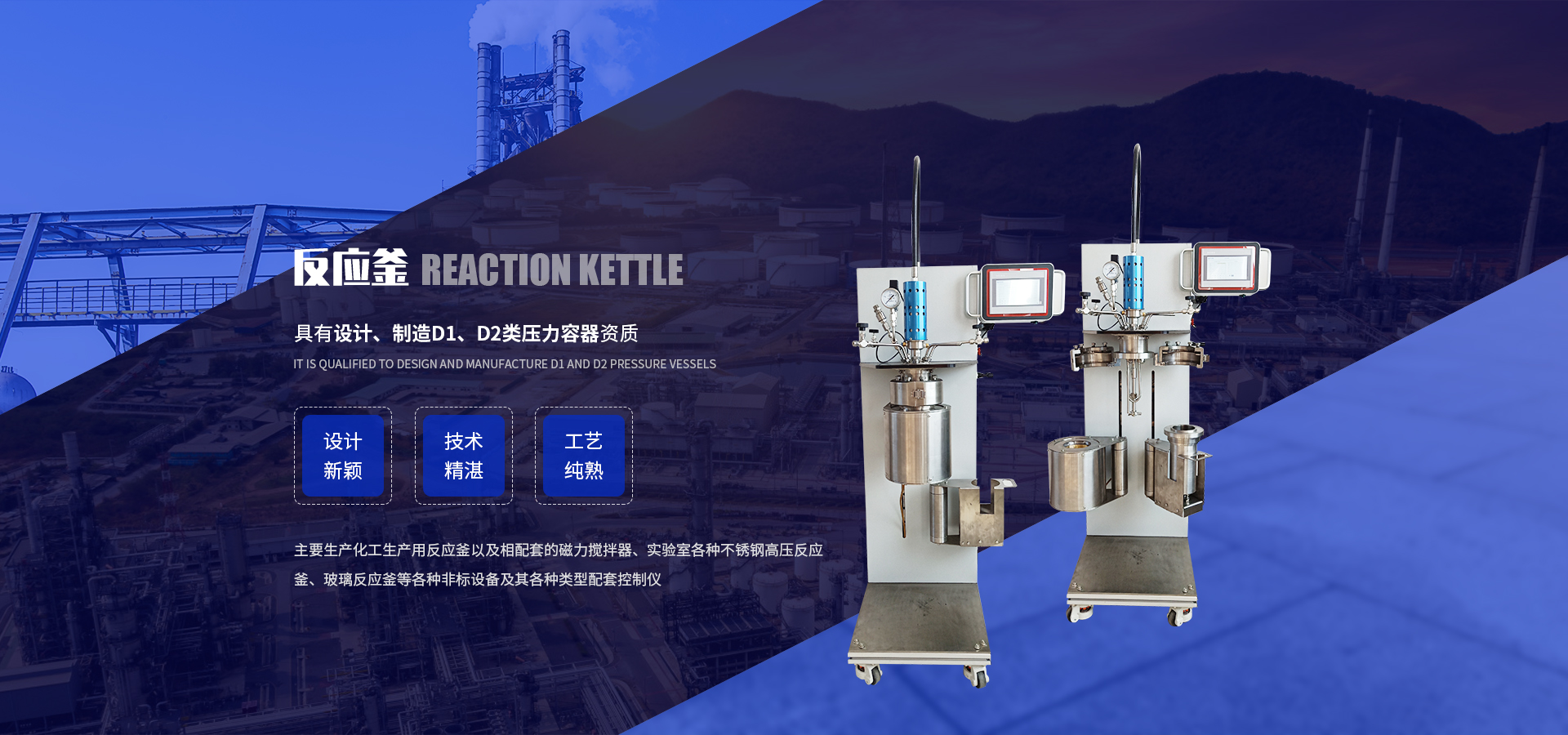 具有設(shè)計(jì)、制造D1、D2類壓力容器資質(zhì),主要生產(chǎn)化工生產(chǎn)用反應(yīng)釜、配套磁力攪拌器、實(shí)驗(yàn)室用:不銹鋼高壓反應(yīng)釜、實(shí)驗(yàn)反應(yīng)釜、玻璃反應(yīng)釜、水熱反應(yīng)釜、均相反應(yīng)器、連續(xù)反應(yīng)裝置、瓶聚槽反應(yīng)裝置、不銹鋼反應(yīng)釜等各種非標(biāo)設(shè)備及各種類型配套控制儀。